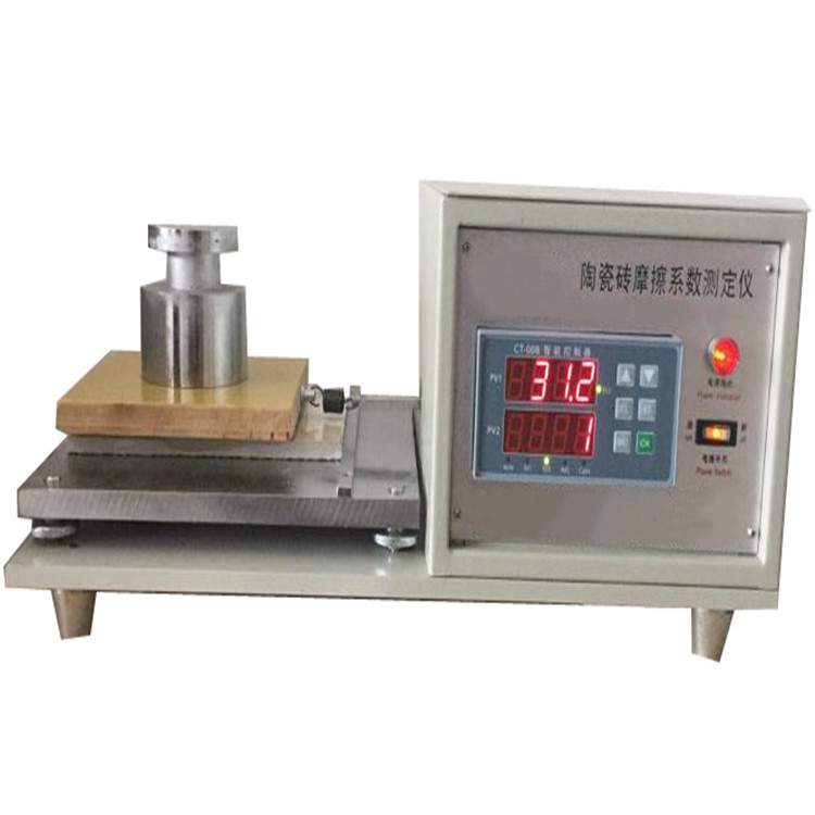 ZB-553型瓷磚摩擦系數測定儀采用微電腦測力控制儀和高精度拉力傳感器組成測力系統,具有測力精度高,性能穩定,自動顯示測試結果,可循環顯示拉力和磨擦系數值等特點。符合GB/T4100-2015標準,方法B靜滑塊法,是陶瓷地板磚磨擦系數測定的理想設備。